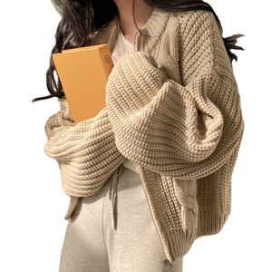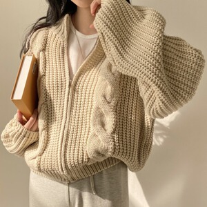 日本と韓国の怠惰なスタイルの太い糸ニットカーディガン 2025 秋と冬の新しいレトロツイストカジュアルジッパーセーター女性のジャケット