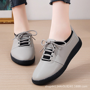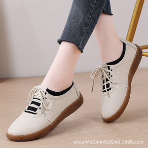本革の白い靴の平底の女性靴はスポーツとレジャーを持っています。