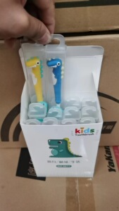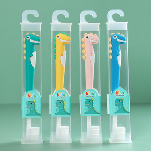 新型の柔らかい毛の細い毛の小さい頭は独立してかわいい恐竜の漫画の赤ちゃんの家庭用歯ブラシを包装して卸売りします。