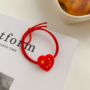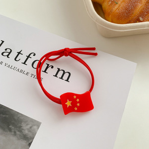 子供の皮筋の赤い国旗の頭飾り国慶節の五星紅旗の輪ゴムの女の子の愛の髪のひもの卸売り