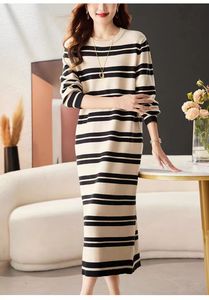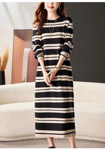 韓国レトロカジュアルストライプセーターレディースロング2025秋冬新コントラストカラー怠惰なスタイルニットドレス