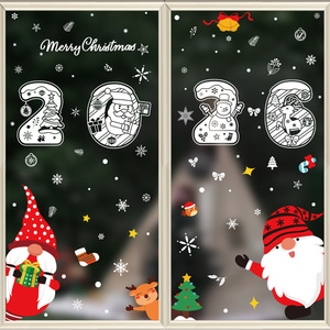 メリークリスマスステッカークリスマス製品ホワイトスノーフレーク静電ステッカーサンタヘラジカ雪だるまウィンドウステッカー卸売