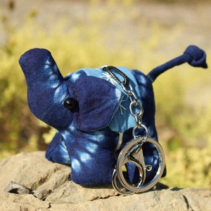 雲南民族藍染布芸動物がかわいい小象のキーホルダーを染めます。