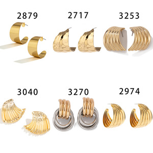 欧米のクロスボーダーのアクセサリの小さい大衆の冷たい風の金属のしわのピアスの個性の不規則な幾何学のC形のストライプのイヤリング
