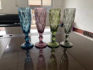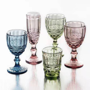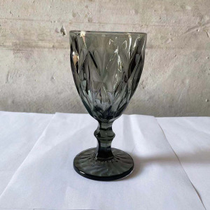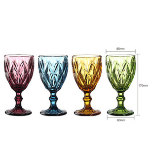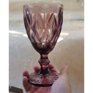 カラーレリーフひし形ガラスレトロワイングラス家庭用耐熱厚い低い高足カップヨーロッパ式ガラスシャンパンカップ