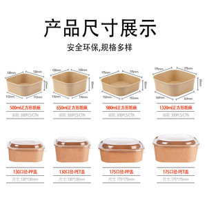 使い捨て弁当箱 正方形クラフト紙弁当箱 フルーツサラダ包装箱 軽食包装箱 耐油弁当箱