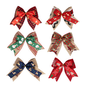 クリスマスリボン飾りアクセサリー鉄線縁黒赤格子模造麻織りリボン飾り卸売メーカー