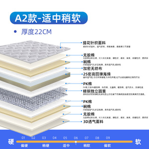 A3項 (22センチ、適度に柔らかい) 正面ジャカードニット生地2センチラテックス精鋼円バネ裏面3D通気生地