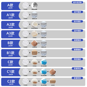 C2項 (24センチ、硬軟両用) 正面ジャカード生地2センチラテックス周囲補強独立バネ2センチ黄麻背面通気生地