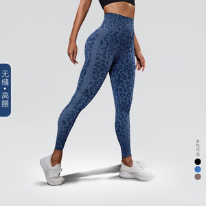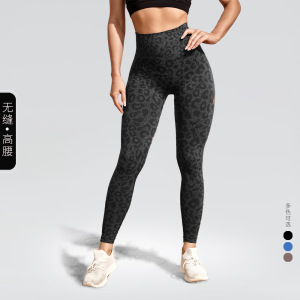 新型シームレスヨガフィットネス服豹紋の外着高腰で腹を収めて身を修める桃のヒップアップ運動タイツ