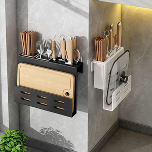 箸立てナイフホルダー一体壁挂け式ステンレス多机能家庭用穴あけなしふた収纳まな板箸笼