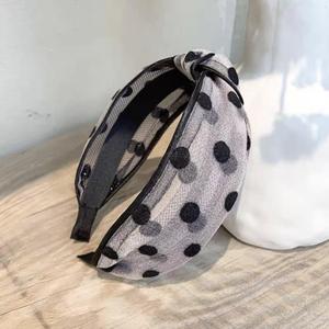 夏の欧米のレトロな広縁の波の点の網の糸のカチューシャの女性の蝶結びの高い頭の頂は顔を洗って広い頭のカチューシャの髪飾りをプラスします。