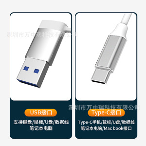 2 in 1タイプusb 1ドラッグ4 + type-cオスアダプタシルバー