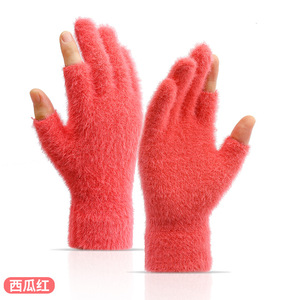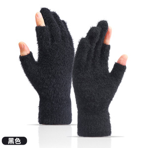 秋冬ファッション保温露二本指写字学生手袋ミンクの毛をまねる韓国版ベルベット防寒手袋