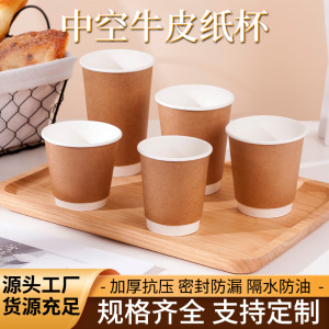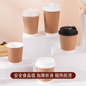 使い捨て紙コップミルクティーコーヒーカップクラフト紙コップ蓋付きテイクアウト包装二重断熱中空コップ
