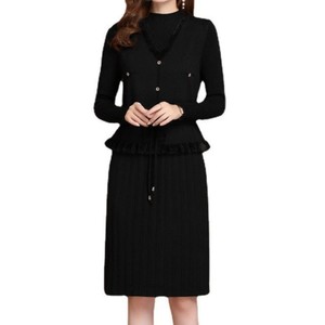 秋冬の新型のスーツの中の長いワンピースの女性の韓国版のゆったりしているハイウエストの気質の2つのセットの底の毛のワンピースの女性