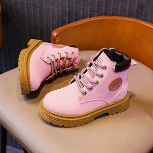 女の子用マーティンブーツ、男の子用ショートブーツ、2025年秋、英国風子供靴、中高生用レザーブーツ、ミドル丈ブーツ