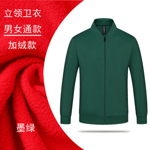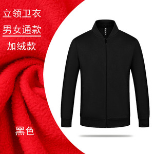 秋冬衛衣企業作業服印ロゴ純色長袖加毛工衣団体工装コート男女