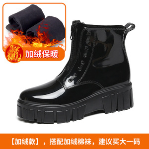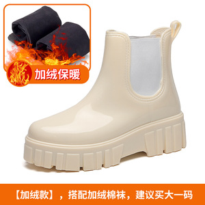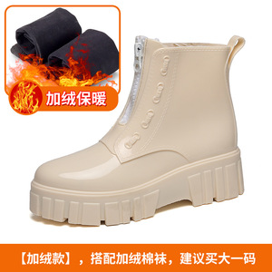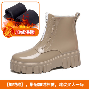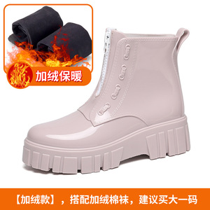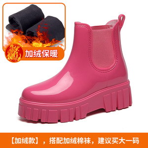 秋冬のベルベットの新型ファッション滑り止め雨靴女性ネット赤外は雨靴女性の柔らかい底の台所の短い防水靴を着ている