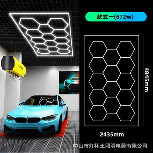 ハニカムランプ 110V クロスボーダー六角ガレージランプ 220V フィルム防水洗車ランプ車の美容ワークステーションランプ