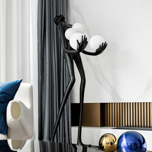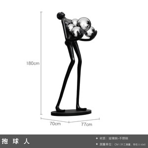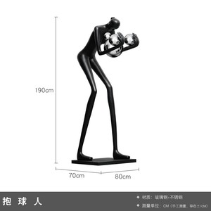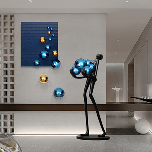 現代の抽象芸術はボールの人物の彫刻を抱きます。