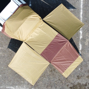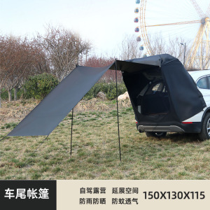 屋根テントsuv車の後ろにテントを伸ばして、自分で屋外キャンプ車の車の日除け車のサイドテントを旅行します。