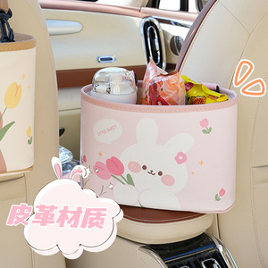 漫画熊車載ゴミ箱革プリント自動車収納収納バケツ吊り式多機能車載収納ボックス