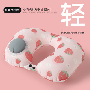 植毛空気入れu型枕自動tpu押圧旅行枕牛乳糸エア枕旅行三宝代発