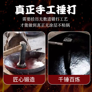 手作りの鉄鍋の古い鉄鍋の家庭用炒め物鍋は鍋にくっつかない。