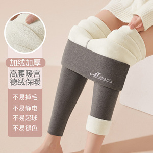デコルテのレギンスの両面のつや消しの秋のズボンの快適な保温の綿のズボンの女性は外で高腰の9分のズボンと綿のズボンを着ることができます。