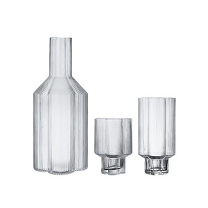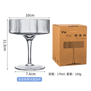 ヨーロッパ式のうねりのグラスの縦の杯のストライプの高い足のアイスクリームのコップの家庭用の冷たい水筒のinsはコップを畳むことができます。