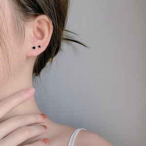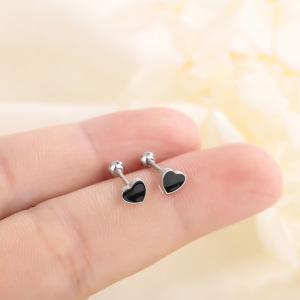 S925黒い愛のピアスの女性はシンプルで小さくて、ネジのイヤリングの幾何学的な個性があります。