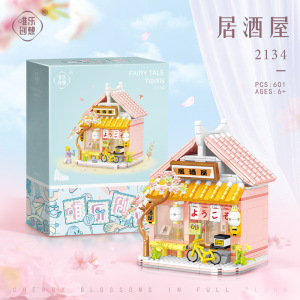Weile Chuangxiang コーヒーマシンビルディングブロック花桜の木の装飾品誕生日ギフト組み立て図子供のおもちゃ卸売ドロップシッピング