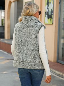 フラッシュパイル欧米カジュアル秋タイプ女装丸首長袖ジッパー無熱色あせ処理泡パイル女性馬甲
