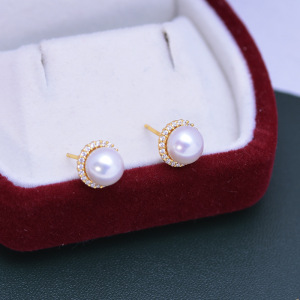 淡水6-7mm真円強光ほぼ無傷真珠ピアスs 925銀太陽花金耳飾り女性韓国風
