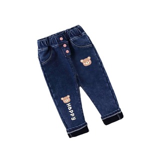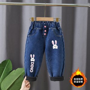 秋冬の女の子とベルベットのジーンズの外に長い耳のウサギの韓国版の高い腰のジーパンの女の子の韓国版のファッションのズボンを着ます。