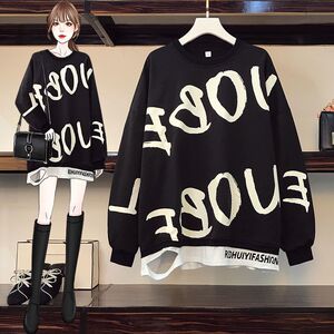 150kg 偽ツーピーススウェットシャツ女性のための 2022 春と秋の薄いファットガール 100kg 韓国スタイルのルーズジャケット痩身