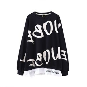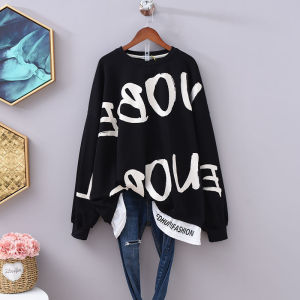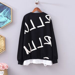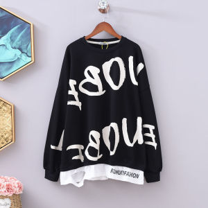 ヨーロッパの商品の秋の大きいサイズの2-300斤の長袖の偽の2つの長袖の衛衣の女性の満印のアルファベットのゆったりした洋気のコート