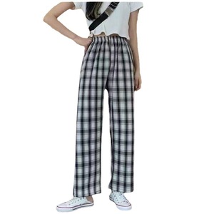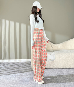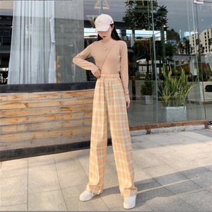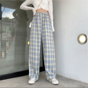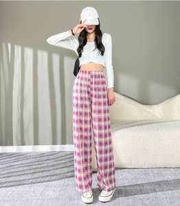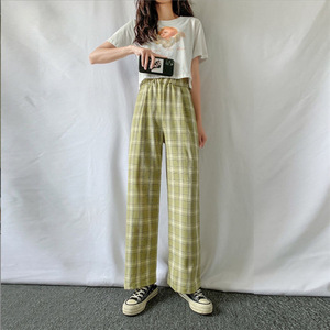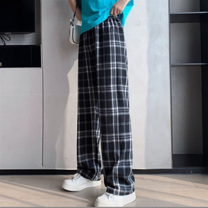 2025春夏季新款高腰显瘦直筒格子裤女宽松阔腿裤垂坠感长裤女垂感