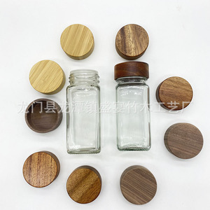 調味料瓶木製蓋ガラス調味料瓶竹蓋セラミック木製蓋キッチン収納缶調味料貯蔵瓶蓋