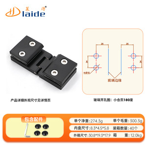 クロスボーダー小型ガラスヒンジ304ステンレス精密鋳造ガラスクリップ角型小型ヒンジマットブラックブラッシュ仕上げ
