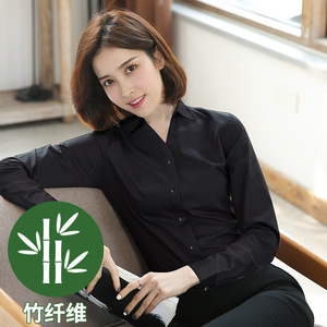 白い長袖シャツ 女性用 オフィスウェア ワークウェア 竹繊維 Vネック 小衿 白シャツ 卸売