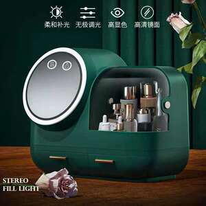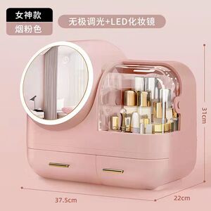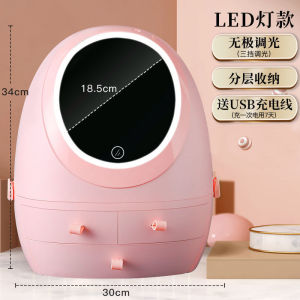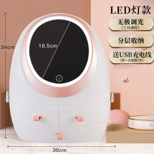 ネットレッド化粧品収納ケースled化粧鏡付きクリエイティブデスクトップ防塵スキンケア化粧台収納ボックス