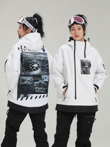 24新品カップルスキーウェア雪服潮クールプルオーバースキーウェアジッパー付きパーカー