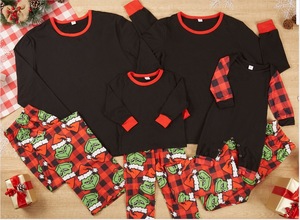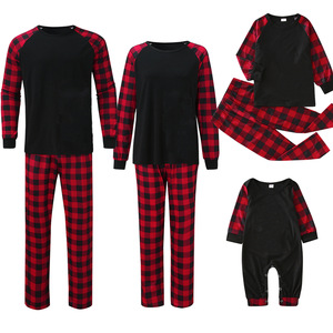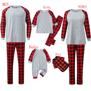 天明服飾 欧米風親子ホームウェア クリスマスホームウェア 親子セット 格子柄プリントホームウェア