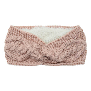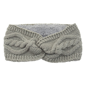欧米とベルベットの大きな菱格交差ヘアバンド毛糸ニット運動ヘッドバンド耳保護保温と裏地防寒ヘッドカバー