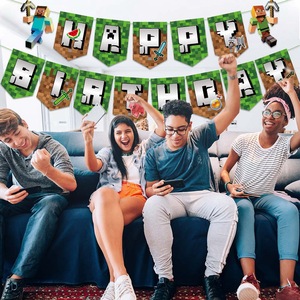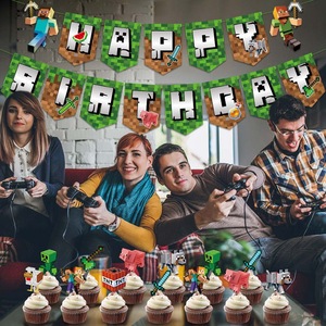 マインクラフト 誕生日パーティー デコレーションセット ピクセルバトル ハッピーバースデー フラッグ ケーキ デザート デコレーション