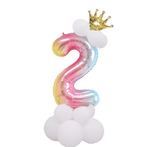 グラデーション虹色デジタルアルミ膜風船32インチ女の赤ちゃんの誕生日満1歳の道路標識イベントの祝日の配置