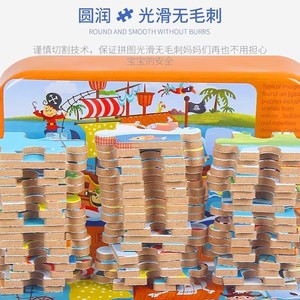 60枚の鉄の箱のジグソーパズルの子供の益智幼稚園の早教のアニメの漫画の木製のジグソーパズルのおもちゃのメーカーは卸売りします。