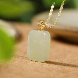24kメッキ金天然和田玉青玉ペンダントネックレスコイン何もないブランドシンプルな気質レトロ玉アイテムペンダント